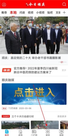 1、首先下载今日顺庆app,并打开软件进入主页。