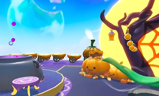 不过不用害怕,地图里的 “吓人元素” 都带着可爱感:马车上挂满了彩色彩带和写着 “万圣节快乐” 的节日横幅,车厢里还放着迷你南瓜灯,哪怕被突然出现的南瓜吓一跳,看到这些装饰也会瞬间被治愈。不少提前体验的玩家都说,这个地图 “又诡又萌,玩起来超上瘾”!