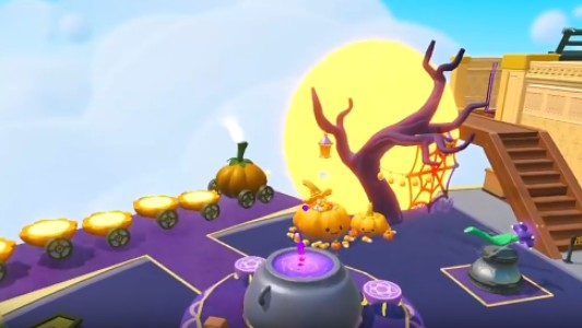 蛋仔岛这次新增了专属万圣节区域,一踏入就能感受到浓浓的节日气息。环岛而行的南瓜车裹着橙黄亮片,车轮碾过路面时还会撒下细碎的荧光南瓜屑,氛围感直接拉满;挂在梧桐枝桠间的扫帚秋千更有意思,轻轻一荡就会飘出带南瓜香的风,仿佛下一秒就能像女巫一样腾空而起。