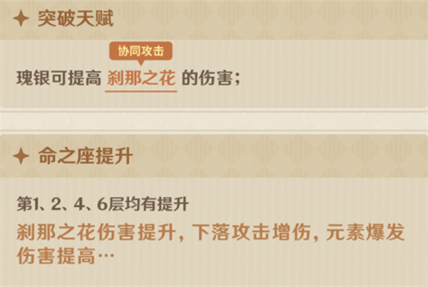 瑰银能够进一步提高刹那之花的伤害倍率,使技能整体收益更高。