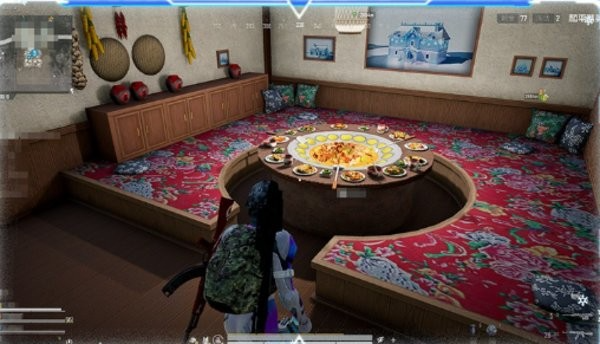 在海岛的其它区域,还分布着多处展现东北传统民俗风情的雪景区域一一雪屋。在雪屋中,特种兵可以体验多种民俗文化互动,拾取主题道具。在雪屋的主建筑中,特种兵甚至可以体验一下东北特色美食一一铁锅炖,大快朵颐!
