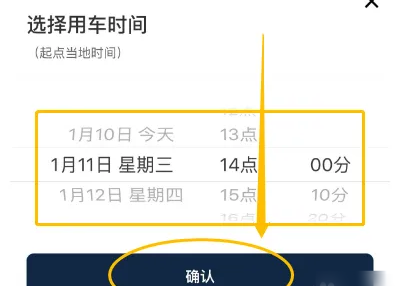 2、选择用车时间后,点击底部的【确定】按钮。