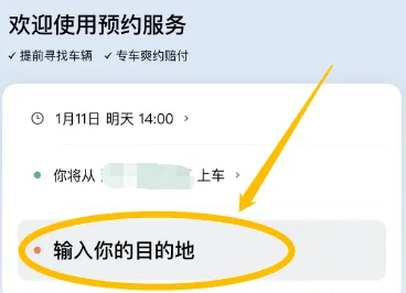 3、接着在预约服务界面输入目的地。