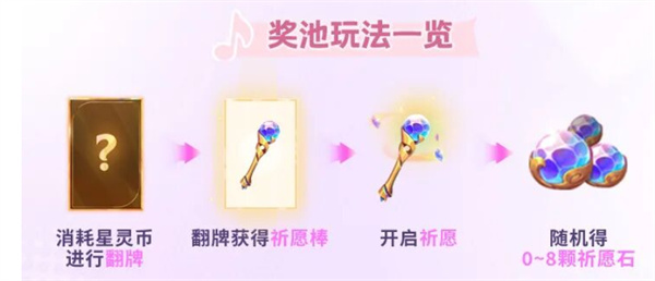 使用祈愿棒开启祈愿,有机会获得 0~8 颗祈愿石。