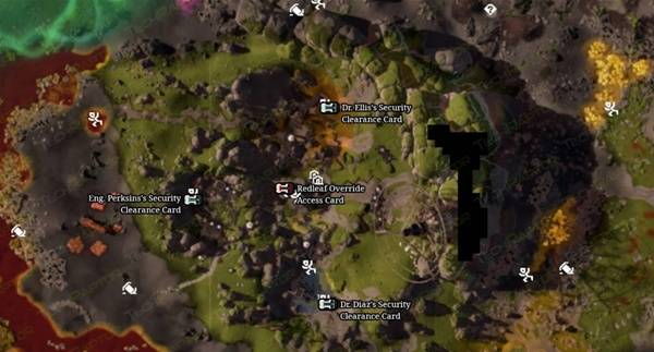红叶基地废弃基地有一个锁,需要三张钥匙卡才能打开。你需要三张钥匙卡,加上第四张,才能打开这个特殊锁。下面是所有星际裂变红叶基地钥匙卡的地图,但不要只是追着它们跑——继续阅读,了解如何在这个危险区域生存。