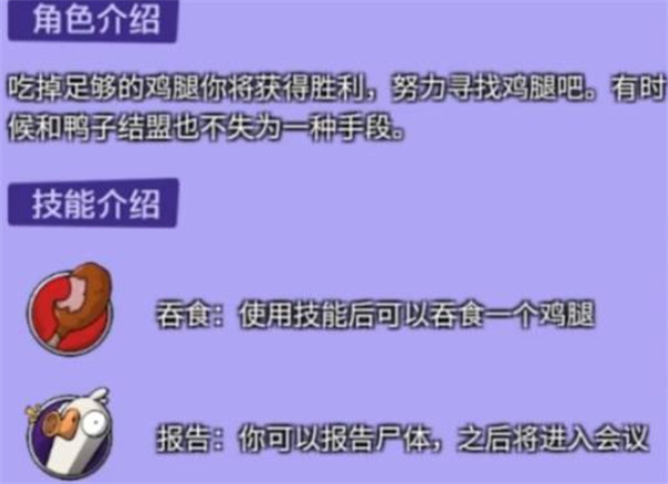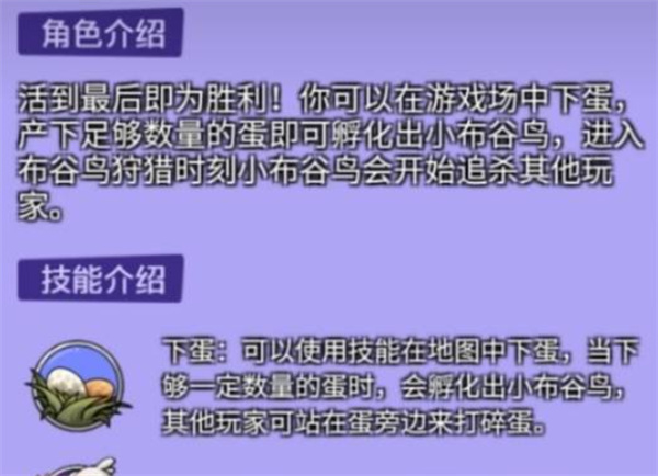 呆呆鸟是典型的娱乐向中立角色,胜利条件非常简单——被投票出局即可获胜。