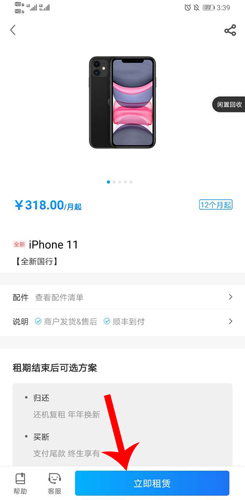2、选择你需要租借的产品。