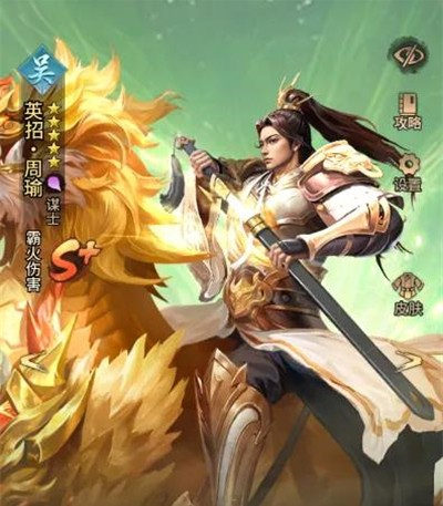 2、英招周瑜:法术输出+控制型武将,前期可选,获得难易程度相对较容易。技能有概率为敌方武将附加减速、禁疗。坐骑技能开场给自己和防御最高的武将增加冰盾,有概率降低敌方目标速度和冰冻敌方目标。