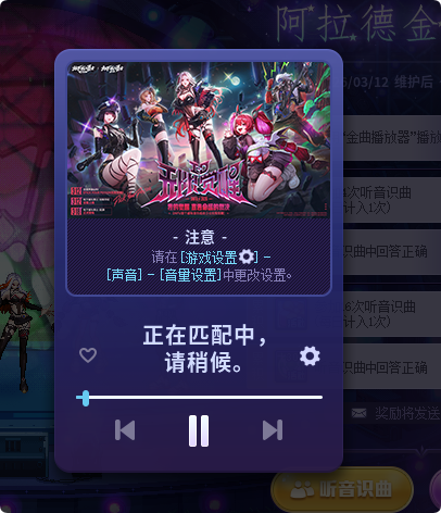 2、在阿拉德金曲大赛下方点击听音识曲进行匹配,每次匹配4个玩家。