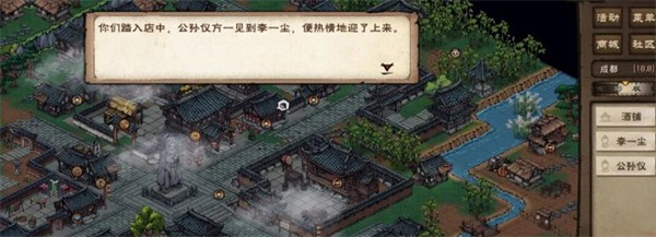 1、拥有随从李一尘后去成都,随处走走概率触发剧情,去(30,8)对话游商,选择「我来买吧」可增加好感,然后去(27,8)对话李一尘。