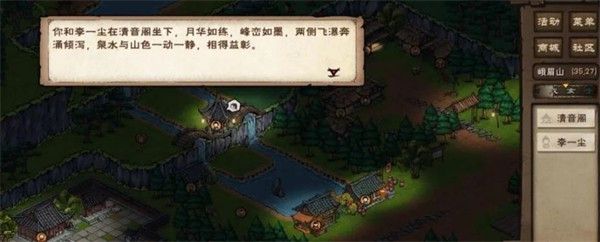 8、夜晚,在峨眉山(35,27)触发剧情,然后在(45,12)剧情后触发战斗,选择「赞同」可增加好感。