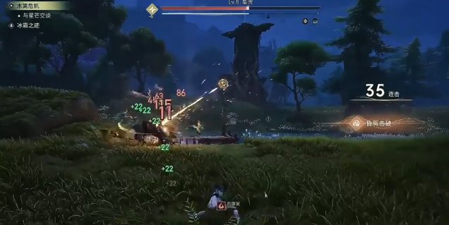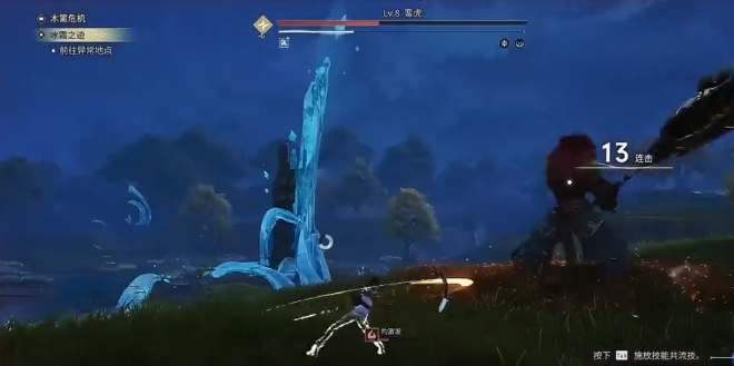 玩家等级大部分都是在4级到6级左右,和boss之间就会有一个等级差距。开战之前的准备工作是比较重要的,建议大家要准备足够的回血药品。在赶往领地的路上,就应该提前把大招的共鸣之力叠满开局就可以直接释放大招。相当于多一段爆发伤害,可以大幅度的提升开局的优势。这个boss不会主动攻击我们,可以先手发起进攻,先随意的释放技能,打出一套输出。被攻击之后boss就会直接跳开,然后释放三连劈。