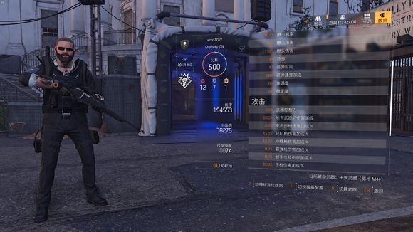 面板属性,由于目前版本无法显示随身武器的属性,手枪配件暴击几率+15%
