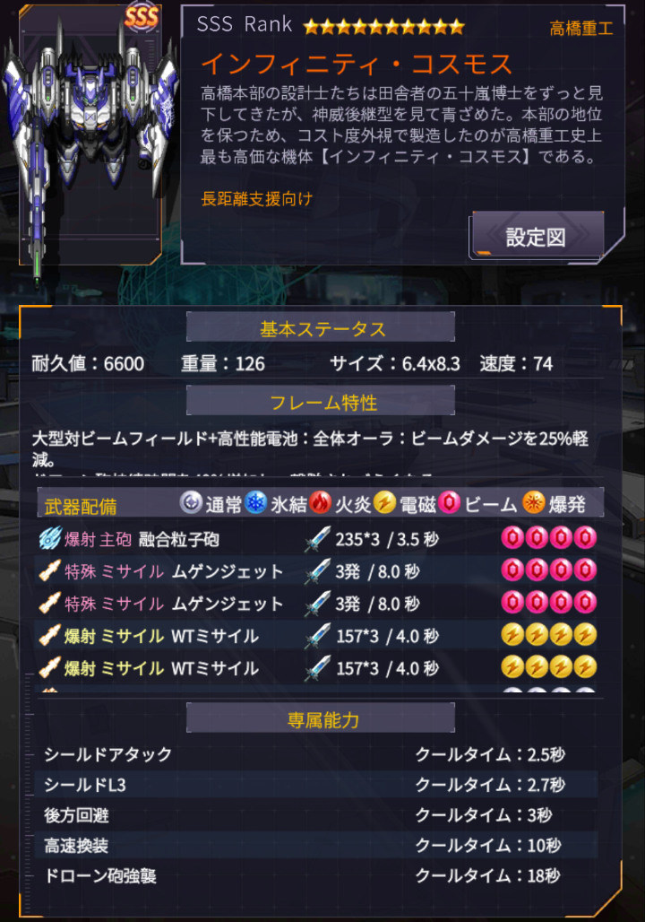 附注:其实有一台更强的浮游炮机体要インフィニティ(无限),但是取得只能靠佣兵蓝票以及黑市取得,另外破防位首选在楼下。