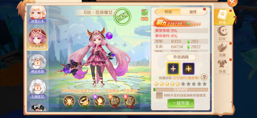 「伙伴系统」于玩家14级时开启(大概游戏自动跑不到3分钟就开启),透过初级/高级升阶石,可以帮伙伴进行升星进阶,开启新的伙伴外型,伙伴外型变更后部会影响他的数值,也就是说数值是一直上去的,外型只是纯外型而已,如果你比较喜欢原本的样子,你也可以装备前一阶的伙伴外型,完全不会影响你的战力,升星达到指定阶级时,还会有额外的技能加成。