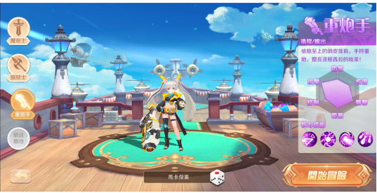 首先进入游戏发现他有3个职业可以选择,名称上「龙剑士、魔骑士、重炮手」,看起来就是一坦两输出,蛮单纯的职业配置!至于补系跟辅助,这款游戏是放在伙伴系统中,所以即使没有组成队伍的情况下,大家也可以带着自己的小伙伴来刷副本、打怪、PVP!