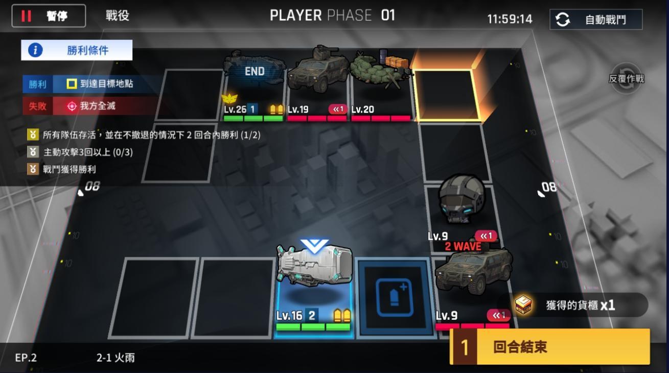 以EP1的4-1为例,可以看到条件包含了主动攻击两次、三回合内胜利,然后胜利条件是到达目标位置,这关要达成一次三星没那么困难,也不用特别安排船舰类型,基本上只要忽略右下角的敌人就会成功了。